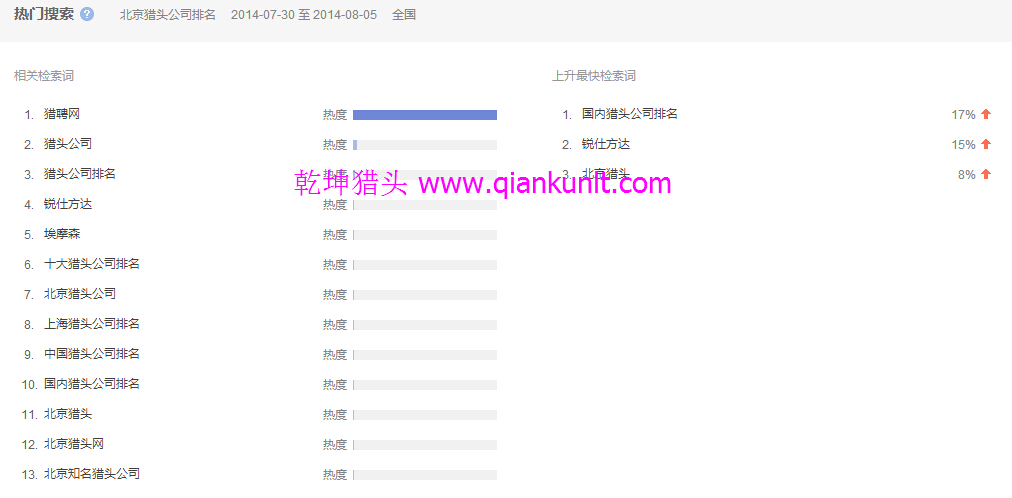14年8月初北京獵頭公司排名相關(guān)檢索熱度分析